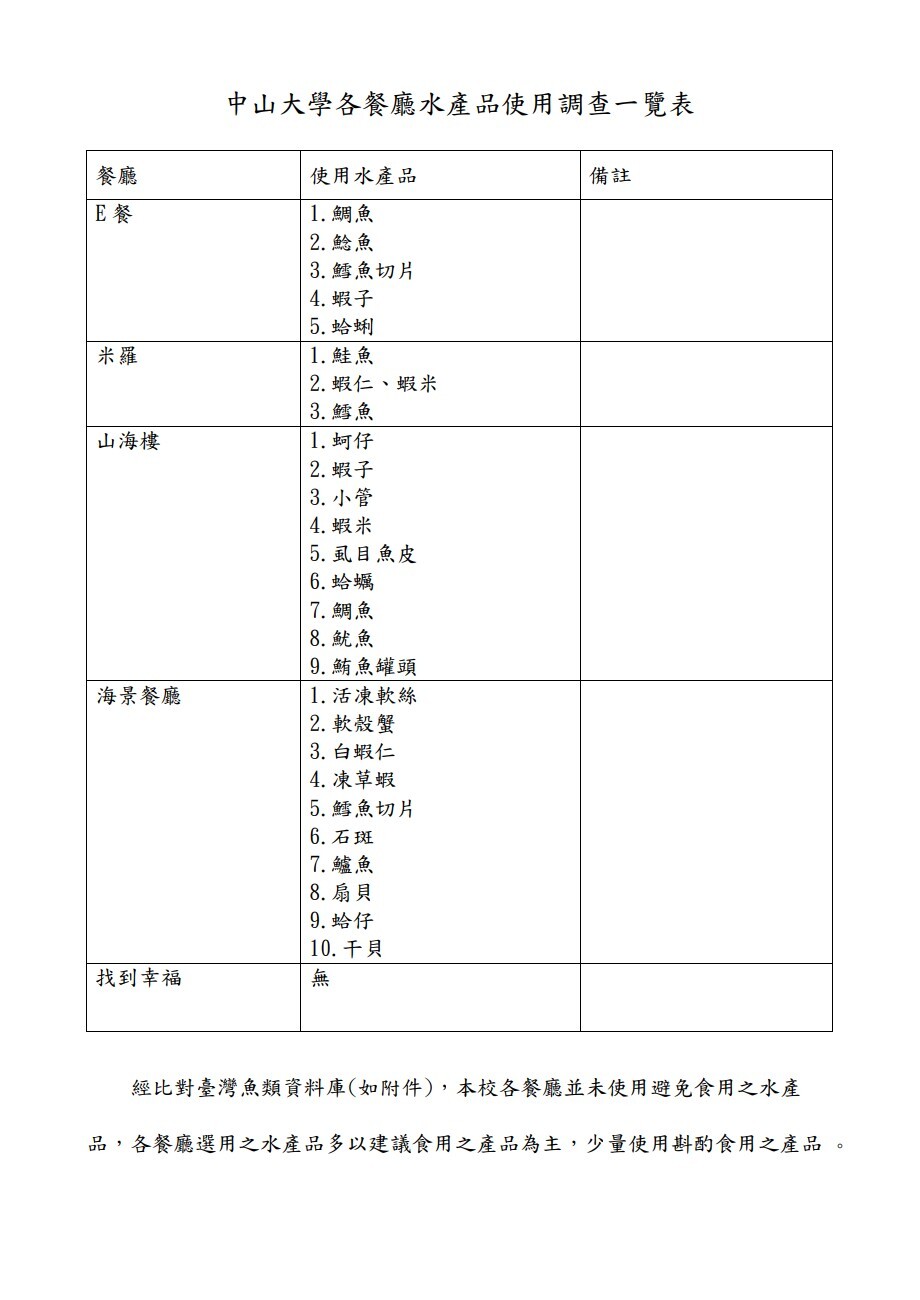 本校持續鼓勵業者水產品購買「地產地消」,幫助永續水產品之利用。