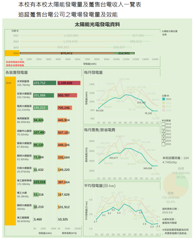 本校有系統定期檢視太陽能光電發電量及發電效能。
