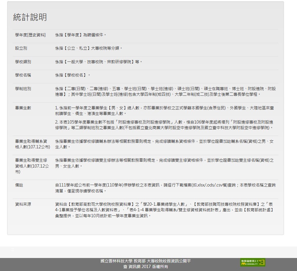 111學年度畢業生女1,066,男1,511,女性畢業生比例41.37%