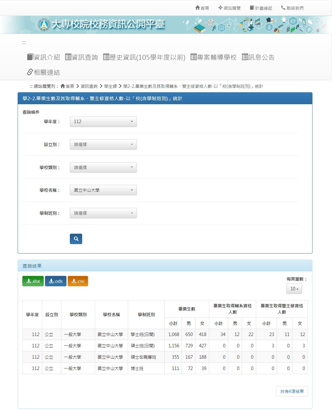 112學年度畢業生女1,072,男1,618,女性畢業生比例39.85%